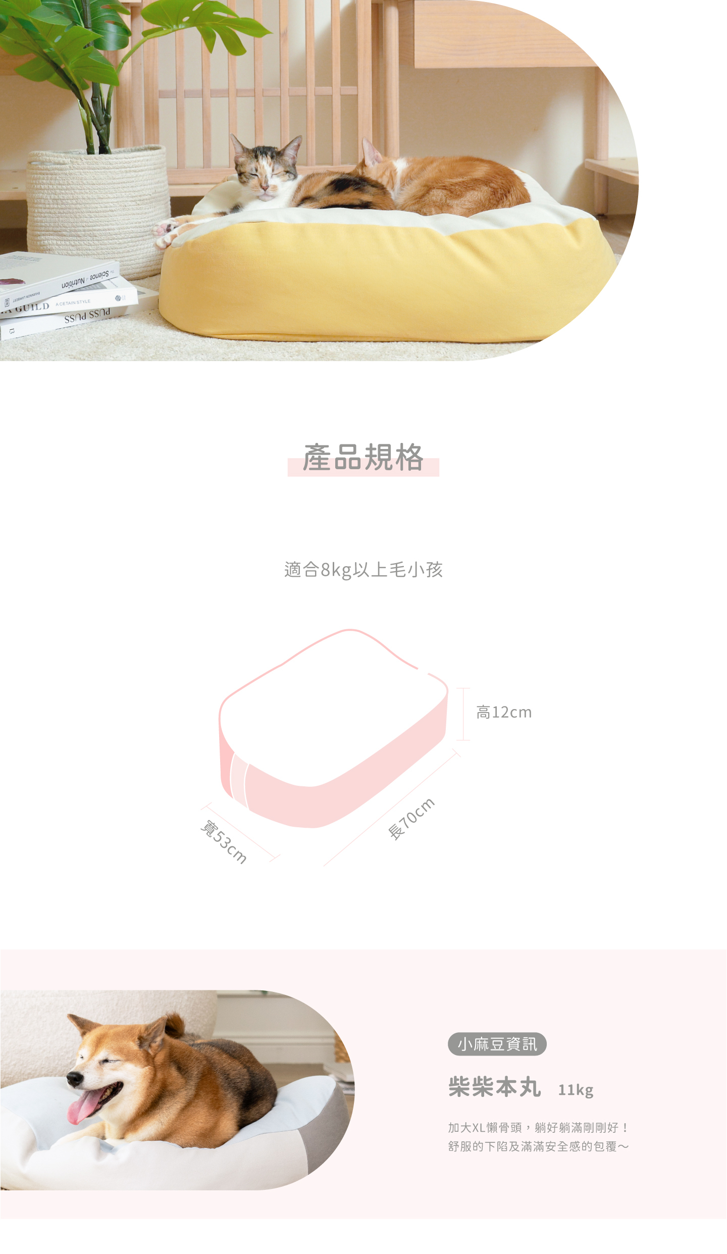 XL 尺寸:L70 x W53 x H12cm (適合8kg以上毛小孩)