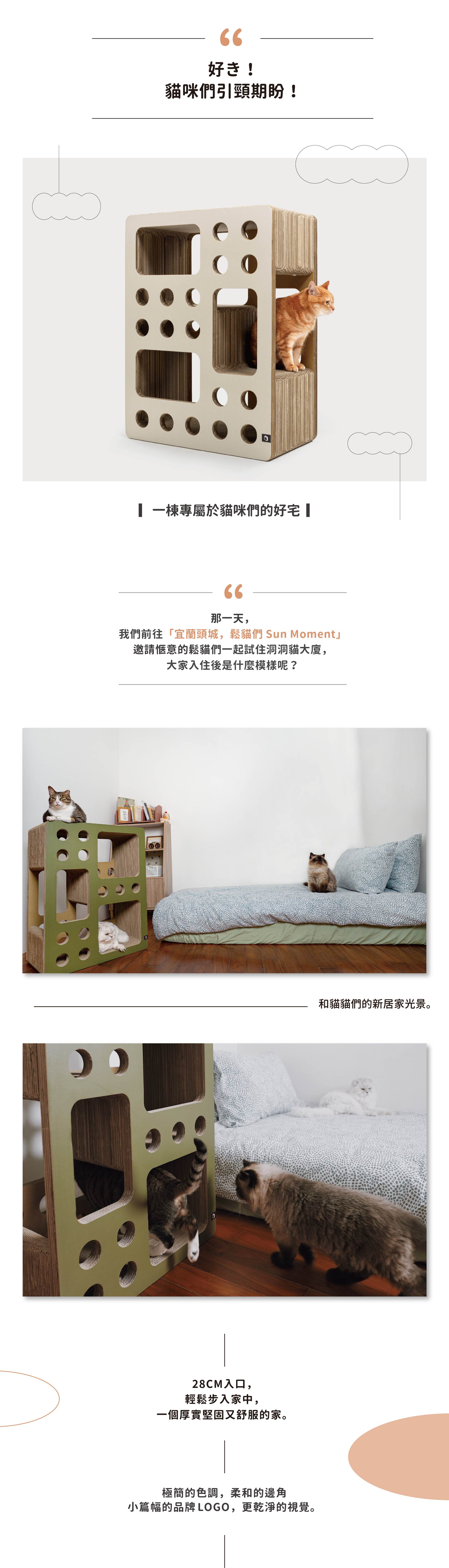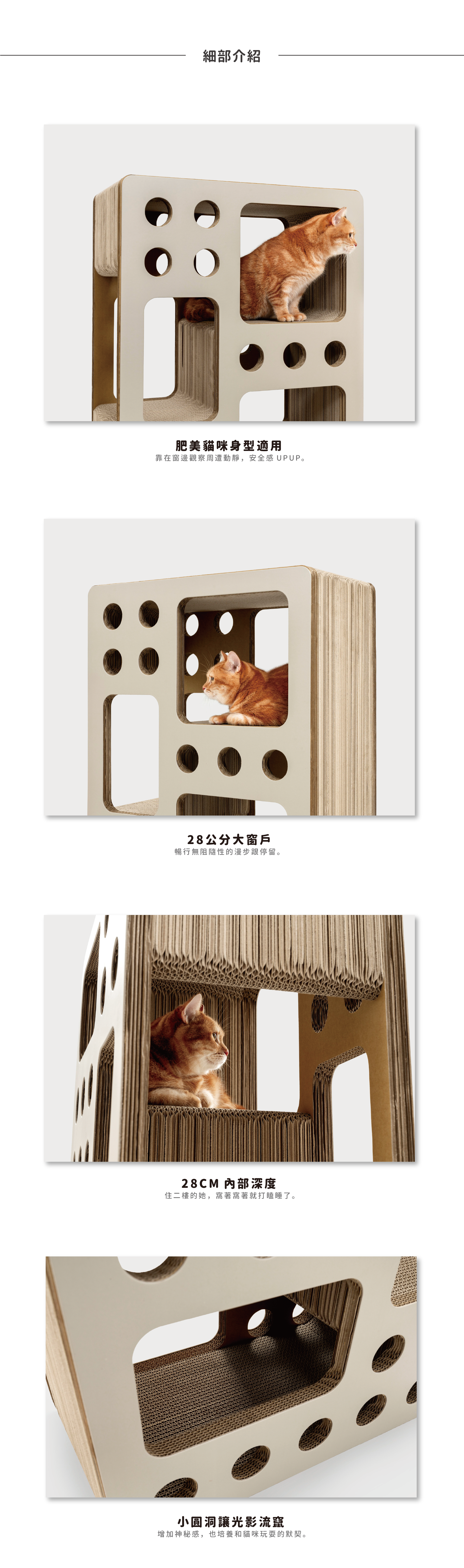獨棟貓咪大廈,三層樓高,內有大坪數空間、採光良好☀的洞洞窗戶,還有好爬的大階梯。
